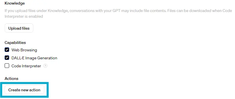 「Configure」内のActionsにある「Create new action」を選択します。 -