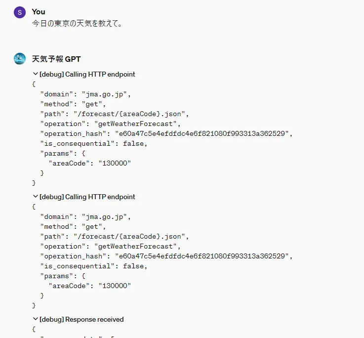 今回はGPTsのActionsを使用して、天気予報に関する質問に答えるチャットボットを作成しました。