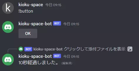 以下は、10秒経過後に「OKボタンが押されました。」というメッセージを返信する例です。