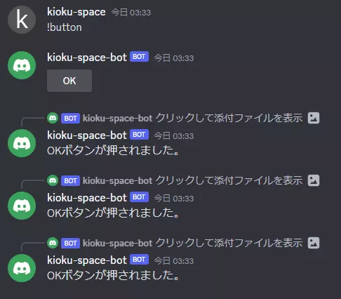 ボタンを押す度にメッセージが返信されることがわかります。